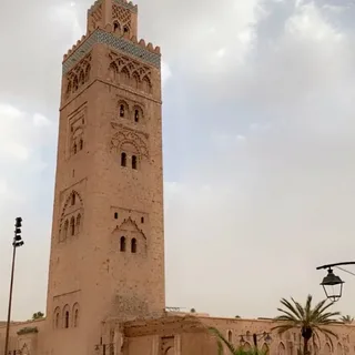La Mosquée Koutoubia ou (Mosquée des Libraires), son nom vient du fait qu’elle se situait dans le souk des marchands de manuscrits. c’est un édifice religieux construit en 12ème siècle à Marrakech. Son architecture et son décor ascétique reflètent l’art de la dynastie des Almohades. Elle fut débutée sous la dynastie berbère des Almoravides en 1120, mais fut profondément remaniée à partir de 1162 sous le calife Almohade Abu Yusuf Yaâqub Al-Mansour, et devint l’un des édifices les plus caractéristiques de ce style. il s’agit d’un plan arabe comportant une grande cour entourée d’un portique et une salle de prière à colonnes. Les nefs sont perpendiculaires au mur de Qibla (direction de la Mecque), celle du centre étant plus large, et la travée qui longe le mur de la Qibla est également magnifiée, le minaret, haut de 77 m, est de section carrée, selon la tradition de l’occident musulman. Ses 17 nefs, soutenues par de nombreux piliers blancs, abritent l’une des plus vastes salles de prière de l’Occident musulman (90 × 60 m) pouvant accueillir jusqu’à vingt mille fidèles. Le bâtiment a été restauré dans l’esprit du monument original en 1990.