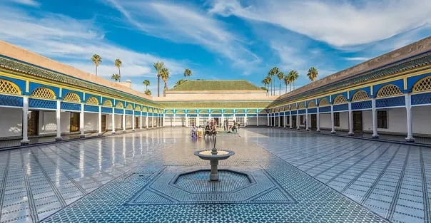 Le palais de la Bahia, (Bahia : la belle, la brillante) est un ancien palais du 19ème siècle de huit hectares de style mauresque / islamique. Actuel musée, il est un des chefs-d’œuvre de l’architecture marocaine et de l’art islamique, un des monuments majeurs du patrimoine culturel du pays, et un des principaux lieux de tourisme au Maroc Entre 1866 et 1867 Si Moussa, puissant et richissime grand Vizir (1er Ministre) du Sultan Hassan 1er du Maroc (1836-1894) fait construire la partie nord de ce vaste palais de 8000 m², sous forme d’un vaste Riad (le plus grand, le plus imposant, et le plus fastueux palais du Maroc de son époque) au sud-est de la médina de Marrakech et de son centre historique à proximité des place Jemaa El-Fna, et le Palais El Badi.