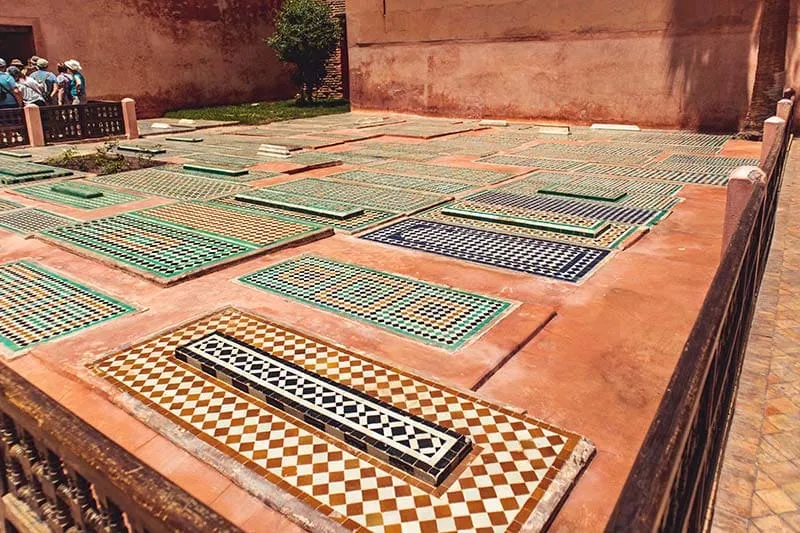 Les tombeaux Saâdiens de Marrakech, datent de l’époque du grand sultan Ahmed Al-Mansour Saâdi (1578-1603). Ces tombeaux ne furent découverts que vers 1917, puis restaurés par le service des Beaux-Arts. Ils sont richement décorés. Le mausolée abrite les corps d’une soixantaine de Saadiens, dont Al-Mansour, ses successeurs et sa famille. L’édifice est composé de trois salles. Le mausolée le plus prestigieux est la salle des douze colonnes. Cette salle abrite la tombe du sultan fils Ahmed El Mansour. Sa coupole en bois de cèdre ouvragé, et les stucs sont finement travaillés, les sépultures y sont en marbre de Carrare d’Italie. Ce mausolée constitue un très bel exemple de l’art décoratif hispano-mauresque.