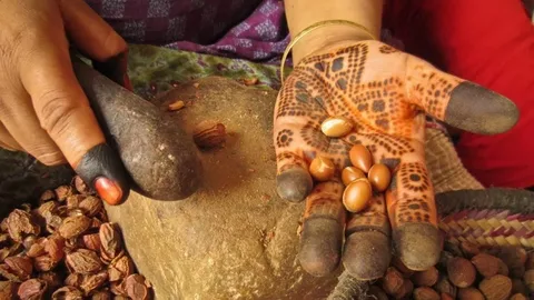 L'Huile d'Argane, Produit du Trésor Naturel de Santé et de Beauté, L'huile cosmétique, anti-âge exceptionnel, elle nourrit les cheveux et leur donne force et souplesse. l'Huile Alimentaire, riche en vitamine E, 80% d'acides gras insaturés. Aide à réduire le mauvais cholestérol dans le sang, inscrite au patrimoine immatériel mondial de l'Unesco en 2014 ...