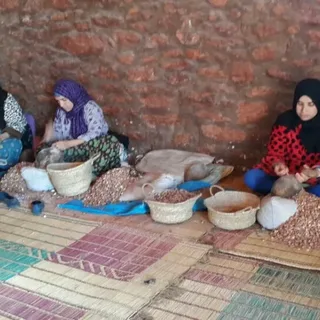 Tourisme équitable et solidaire, Visite des lieux avec une charmants fille qui vous explique les différentes étapes d’extraction de l’huile d’Argane, l’huile cosmétique et l’huile alimentaire, et ces vertus magiques, une dégustation est proposer pour admirer les produits du terroir de cette région du Maroc, comme l’huile d’Argane, Amlou (pâte d’amandes) et les sortes de miel de la région.
