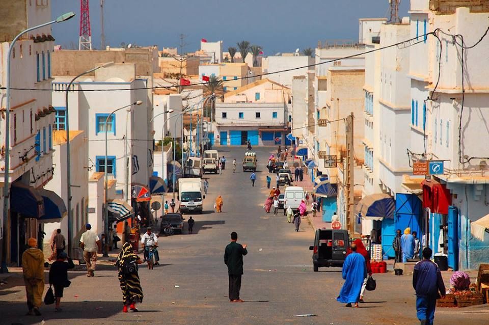Guelmim, une ville surnommée « Bab Sahra’a » – « La Porte du Désert », située derrière les pentes arides de l’Anti Atlas, très fréquentée par les nomades … Après quelques arrêts sur la route, une petite visite du souk aux bestiaux (dromadaires, moutons, chèvres…) est bien agréable, puis on prend la route vers Sidi Ifni …
