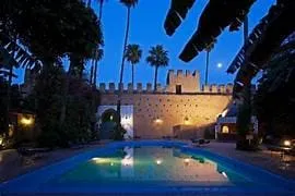 L’ancien palais du pacha de Taroudant, Ouarzazat et Marrakech est transformé en hôtel.. Une bonne tasse de café ou un jus d’orange (1,50€ / personne) sont bien recommandés à l’ombre de ces jardins luxuriants.Malheureusement, depuis la crise du covid 19, l’établissement est fermé pour des raisons inconnus